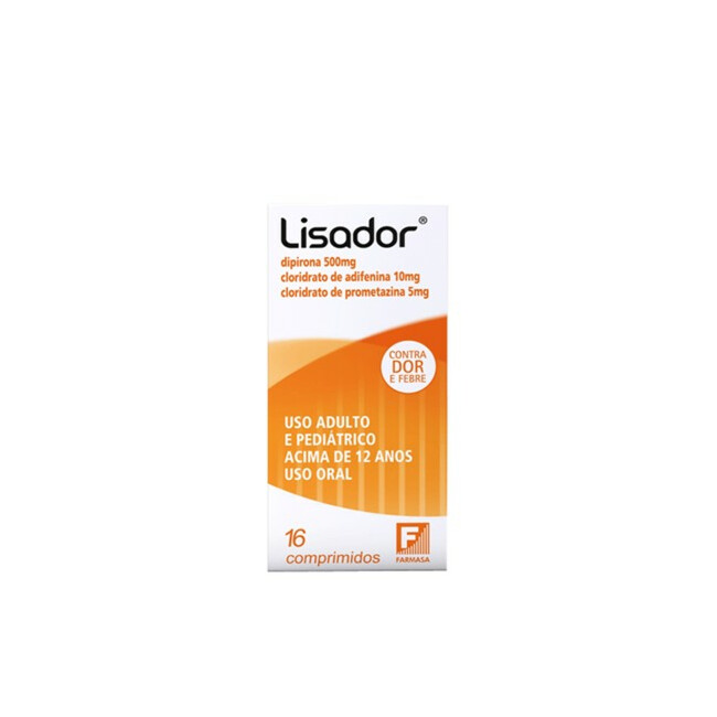 Lisador 500mg + 10mg + 5mg com 16 comprimidos é indicado para o alívio rápido de dores e febre, auxiliando no tratamento de sintomas como dor de cabeça, muscular e estados gripais.