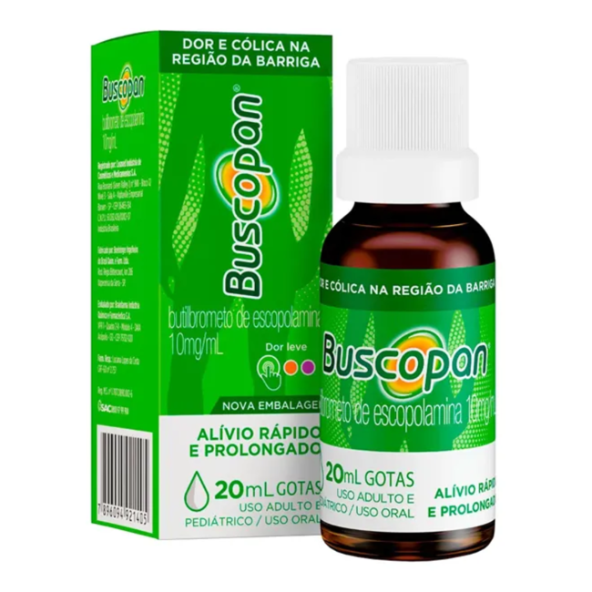 O Buscopan 10 mg/mL – Gotas 20 mL contém butilbrometo de escopolamina, um antiespasmódico eficaz para o alívio de dores e cólicas no trato gastrointestinal e urinário, incluindo cólicas intestinais e menstruais.