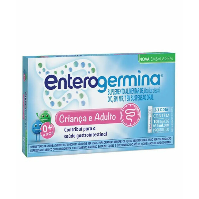 DESCRIÇÃO DO PRODUTOO Enterogermina 5 mL – 10 frascos é um suplemento probiótico que contém Bacillus clausii, um microrganismo benéfico capaz de reestabelecer o equilíbrio da flora intestinal.